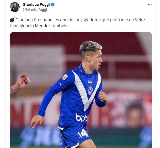Gianluca Poggi confirmó que Prestianni es uno de los jugadores de Vélez que pidió irse tras la “apretada” de la barra