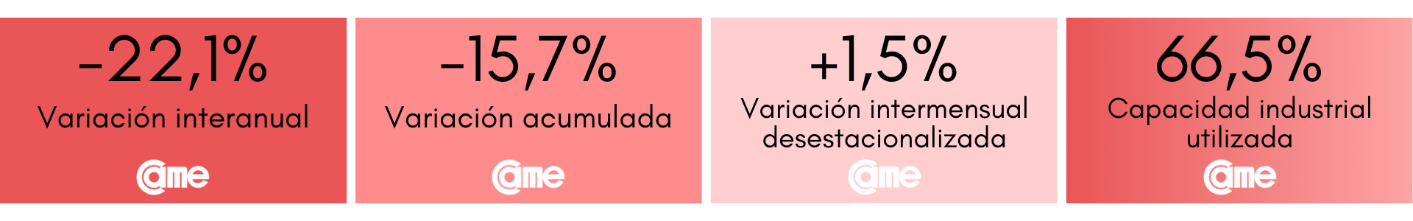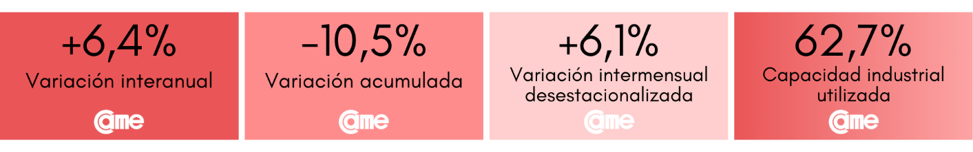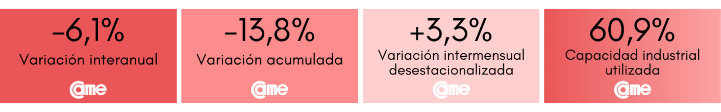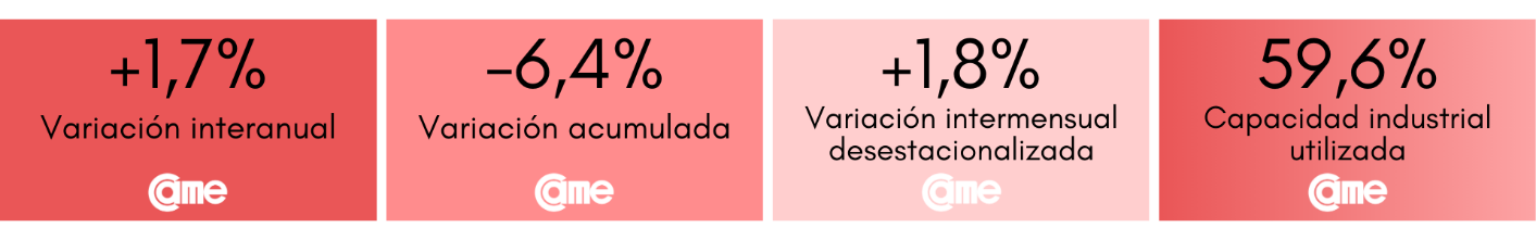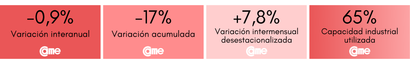 Los resultados surgen del Índice de Producción Industrial Pyme (IPIP) que elabora CAME, con una muestra que alcanzó a 420 industrias pyme a nivel federal.
