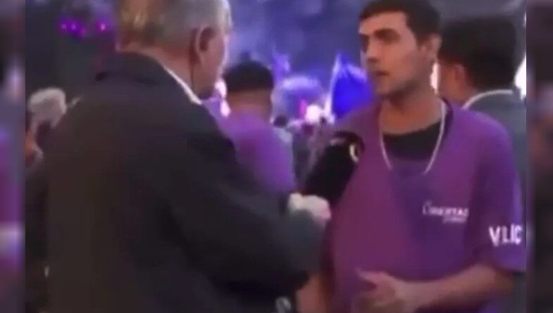 Jóvenes con remeras violetas de LLA se quejaron durante un móvil del canal Todo Noticias (TN), ya que denunciaron que desde la campaña del vocero presidencial les prometieron un pago, que no cumplieron.