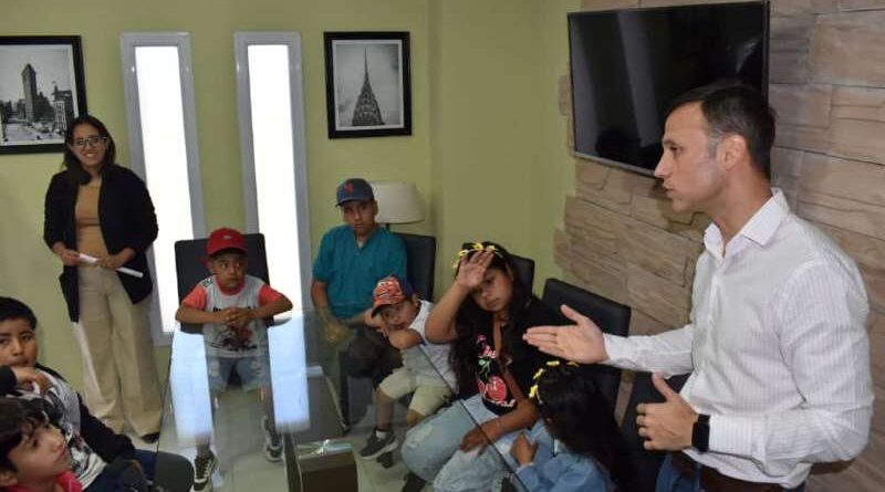 Durante su recorrido los chicos visitaron el edificio municipal donde fueron recibidos por el Intendente Dr. Víctor Araujo, quien recibió presentes y mucho cariño por parte de los niños.