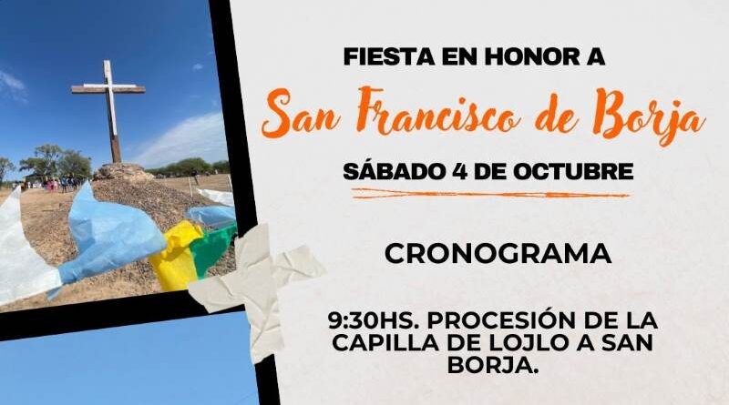 Suncho Corral Santiago del Estero, – La Organización de la Fiesta Patronal San Francisco de Borja tiene el agrado de invitar a la comunidad y a los medios de comunicación a participar de la tradicional Fiesta Patronal en honor a San Francisco de Borja, que se celebrará el próximo 4 de octubre de 2025 en el Establecimiento San Borja, Ruta 2, Km 12.
