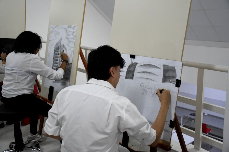 El edificio cuenta con secretaría, rectoría, comedor, sala de profesores, asesoría pedagógica, sección alumnos, talleres de grabado, pintura, dibujo y escultura, SUM y aulas modernas.