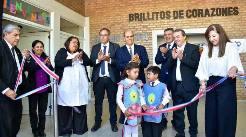 Luego, junto a docentes y alumnos de las instituciones educativas, se procedió al corte de cintas para dejar inaugurado formalmente el nuevo edificio del jardín de infantes Nº 504 “Brillitos de Corazones”, anexo de la Escuela Escuela N°396 “Manuel López Rodríguez”.