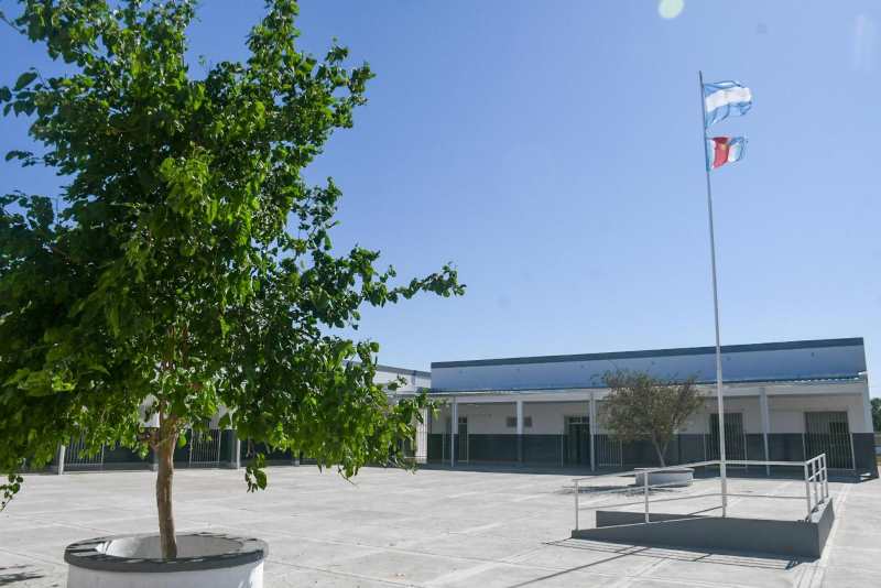 El edificio cuenta con accesos renovados, hall de ingreso, ocho aulas, biblioteca, sala de informática, sanitarios, SUM, sala de máquinas, patio cubierto y galerías, todos espacios diseñados para fortalecer la igualdad educativa.