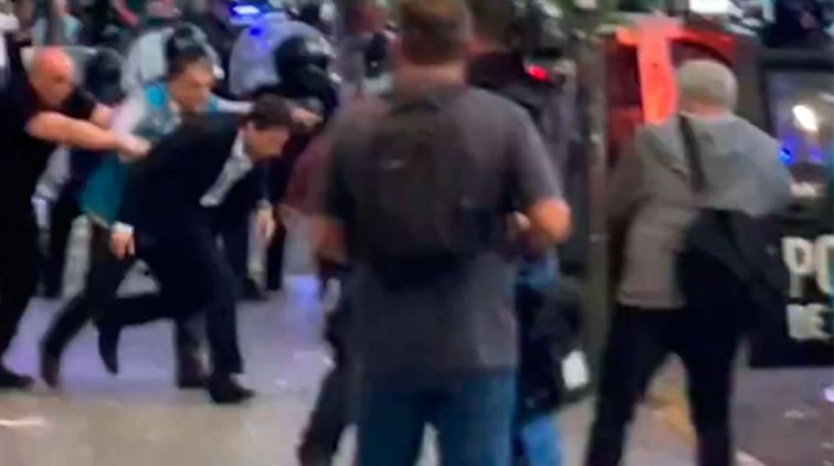 El dirigente llegó pasadas las 11 de la mañana para reunirse con empleados y directivos, pero su presencia generó una fuerte reacción entre los socios que pasaban por la zona. Con el correr de los minutos, la tensión escaló: varios simpatizantes intentaron ingresar al edificio, aprovechando cada vez que se abrían las puertas, mientras otros las golpeaban con patadas en señal de repudio.