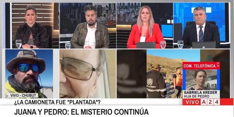 La búsqueda de Pedro Alberto Kreder (79) y de Juana Inés Morales (69) mantiene en vilo a todo Chubut desde el 11 de octubre pasado, cuando salieron desde Comodoro Rivadavia para hacer un viaje del que no volvieron. En diálogo con A24, Gabriela Kreder contó cuáles son las principales sospechas que tiene la familia de Pedro y comentó el estado en el que se encuentra la búsqueda.