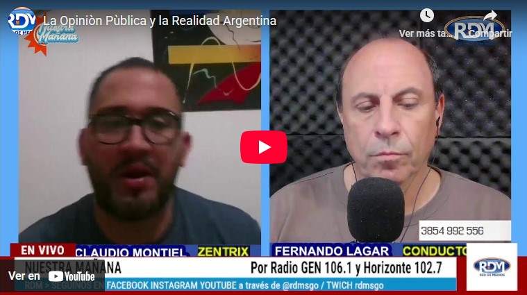 En diálogo con el programa “Nuestra Mañana”, que se emite por la Red de Medios —en simultáneo por FM Horizonte 102.7, FM GEN 106.1, el sitio www.rdmsantiago.com.ar y redes sociales: @rdmsantiago—, el Lic. Claudio Montiel, representante de la consultora Zentrix, analizó los posibles escenarios de cara a las elecciones del 26 de octubre, en una entrevista realizada por Fernando Lagar y con la participación en móvil de Luis “Charly” Carabajal.