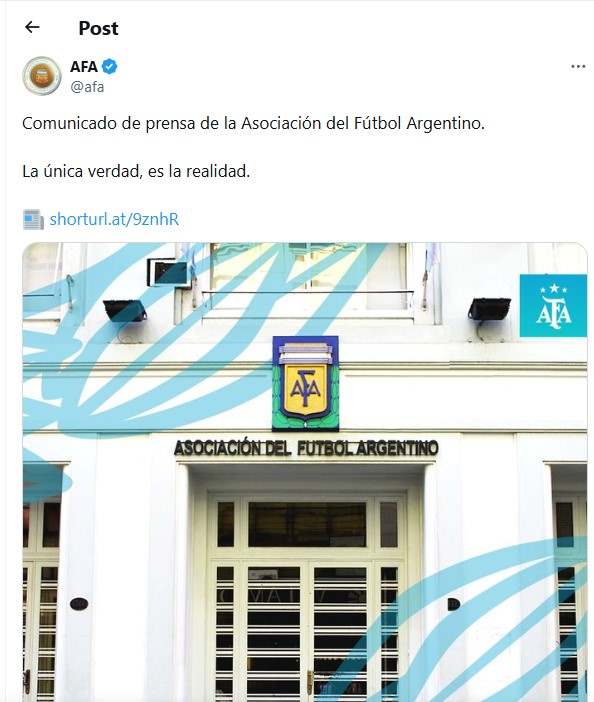 La Asociación del Fútbol Argentino emitió un nuevo comunicado de prensa, como respuesta a la campaña mediática que inició el Grupo Clarin, La Nación, el ministro Cuneo Libarona y el empresario Guillermo Tofoni y el Gobierno Nacional, quienes fueron señalaos como los “motrizadores” del ataque mediático contra la AFA y sus directivos.