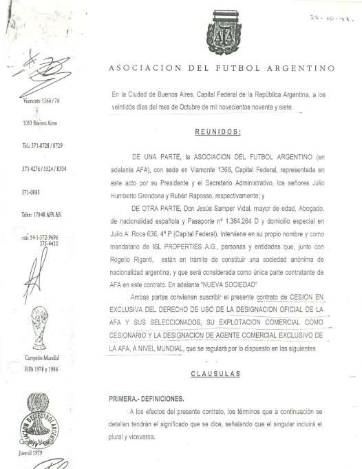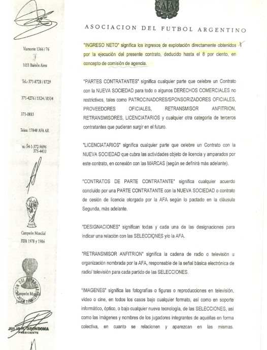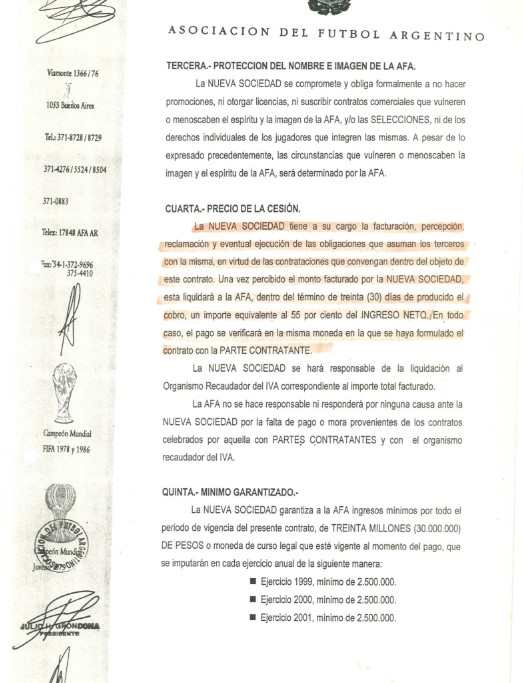 Solo como una pequeña muestra de ello, el entonces Agente Comercial ISL obtenía el 55% y la AFA el 45%, luego seguido como Agente Comercial por Santa Mónica que obtenía el 50% y la AFA el restante 50% y el señor Guillermo Tofoni que, habiéndose asociado a un tenedor de derechos sobre partidos amistosos internacionales de nuestra Selección, obtenía hasta un 35% sobre los mayores ingresos, su asociado el 65% y la AFA solo la escasa suma fija de usd 1.000.000 por cada uno de dichos partidos.