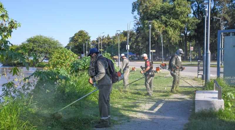 Las Direcciones de Servicios Urbanos y Parques y Paseos de la Municipalidad de la Capital llevaron adelante un operativo integral de desmalezamiento y limpieza sobre los espacios verdes de la Costanera, desde