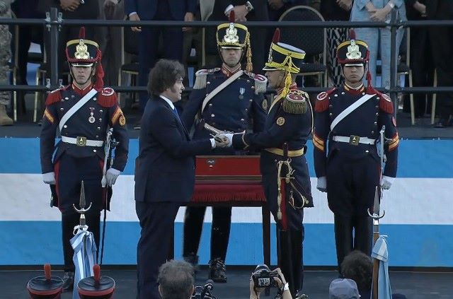 Con el antecedente de la renuncia de la directora del Museo, Javier Milei viajó con su comitiva a Campo de la Gloria, Santa Fe, e hizo un uso político del sable corvo que fue donado por San Martín a Rosas y luego entregado al Estado para quedar en el Museo. «Es un acto de justicia», dijo el presidente.