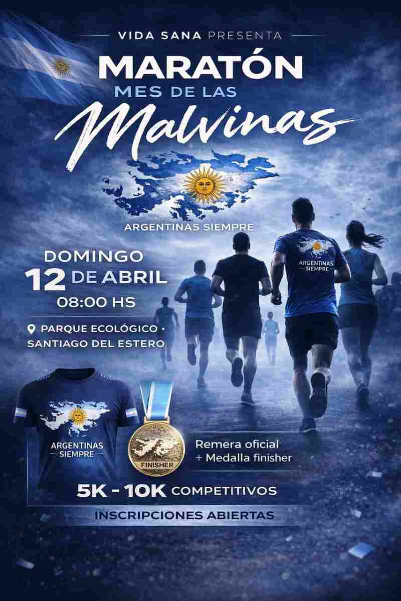 La Asociación Vida Sana invita a la comunidad a participar de la carrera “Malvinas Argentinas Siempre”, que se realizará el próximo domingo 12 de abril en el Parque Ecológico de Santiago del Estero, con la participación estimada de 400 a 500 atletas.