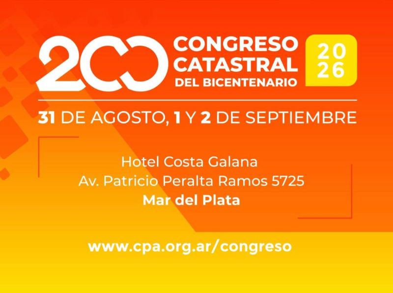 El evento conmemorará los 200 años del Departamento Topográfico, institución histórica vinculada al desarrollo del ordenamiento territorial argentino, y reunirá a especialistas, académicos y profesionales de todo el país para debatir sobre catastro, seguridad jurídica y planificación territorial.