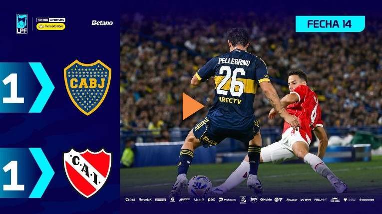 Boca empató 1-1 contra Independiente, en un partido correspondiente a la 14ª fecha del Torneo Apertura 2026 de la Liga Profesional. Matías Abaldo había abierto la cuenta para el “Rojo”, mientras que Milton Giménez igualó las acciones.