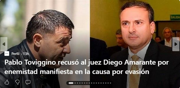 El tesorero de la Asociación del Fútbol Argentino (AFA), Pablo Toviggino, presentó una recusación formal contra el juez en lo Penal Económico Diego Amarante, con el objetivo de apartarlo de la causa donde se lo investiga por la presunta retención indebida de 19.300 millones de pesos en conceptos de aportes previsionales. El dirigente realizó la presentación en primera persona, denunciando una “enemistad manifiesta” y un supuesto plan de hostigamiento mediático en su contra. El pedido surge luego de que el magistrado dictara su procesamiento, junto al de Claudio “Chiqui” Tapia, y ratificara medidas restrictivas como la prohibición de salida del país.